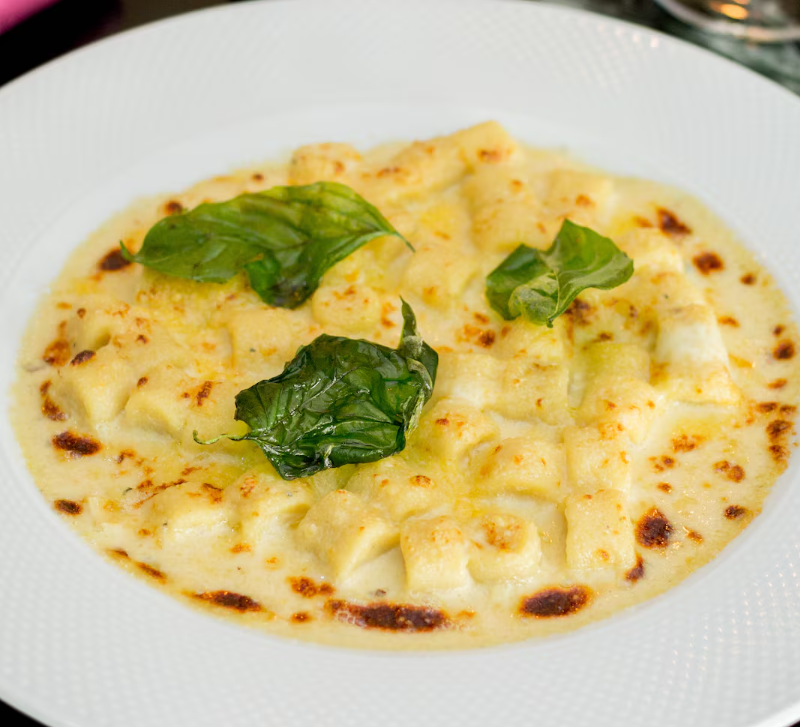 Nhoques macios e leves, servidos com um cremoso molho de quatro queijos a base de molho bechamel com parmesão, provolone, muçarela e gorgonzola — que se derretem em perfeita harmonia. Uma combinação clássica e irresistível para os amantes de queijo.