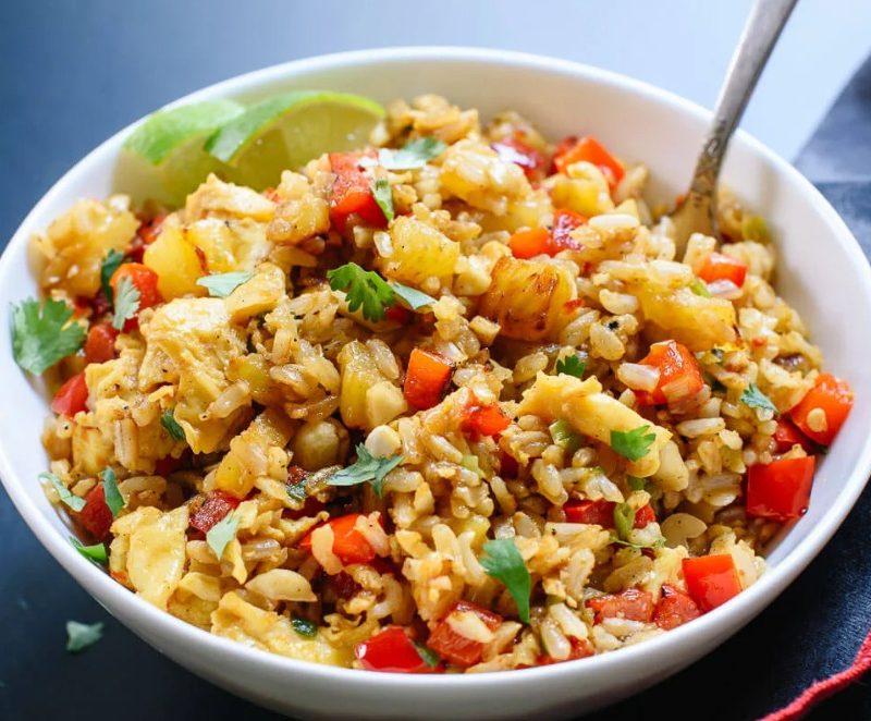 Um fried rice inspirado nos sabores do Sudeste Asiático: arroz dourado no wok, cheio de aromas, salteado com tiras macias de mignon suíno, legumes frescos e molho levemente adocicado. O toque especial vem do abacaxi fresco, que carameliza na panela e traz acidez, perfume e equilíbrio perfeito ao prato. Uma combinação vibrante, suculenta e surpreendentemente leve — daquele tipo que conquista já na primeira garfada.