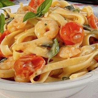 Camarão Siciliano com Fettuccine