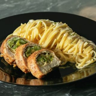 Frango Recheado com Aspargo e Búfala e Spaghetti Cítrico