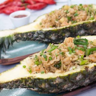 Quer impressionar e surpreender? Essa é a receita! Prepare um arroz frito super temperado com camarões e sirva dentro de um abacaxi. Todos irão amar.