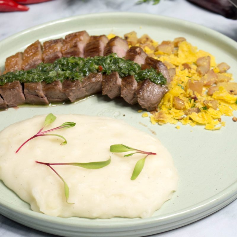 Receita super saborosa com uma picanha extremamente macia, uma farofa típica paranaense e para finalizar um purê incrível