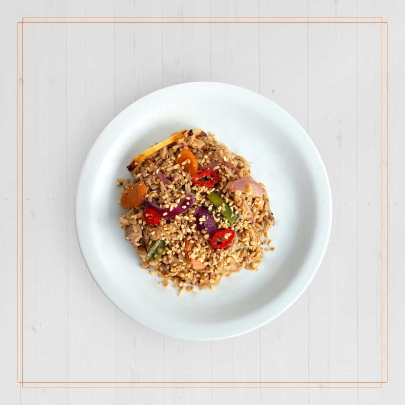 Essa é uma das receitas mais famosas da Thailandia. Trata-se de um arroz frito com abacaxi, cubos de mignon suíno, pimenta dedo de moça e muitos ingredientes que a tornam sensacional. Cheia de sabor. Para os vegetarianos temos opção com Tofu.